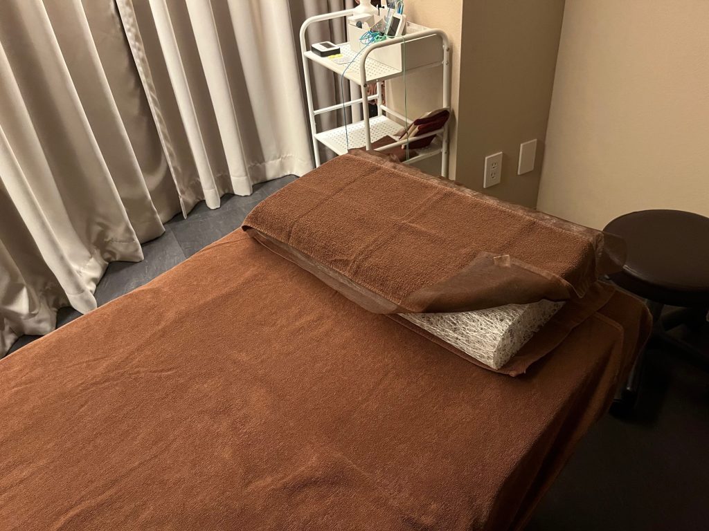 今回受けたのは60分コース、施術の中心になったのは、頭部・首・背中への鍼灸です。