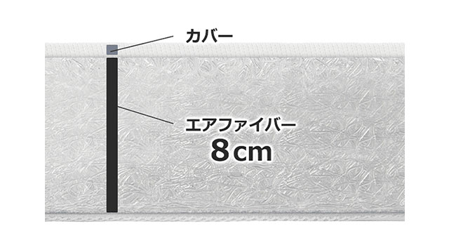 厚さ8cmのエアファイバー®が体全体をしっかり支え、寝返りしやすい反発力で自然な寝姿勢をサポートします。
