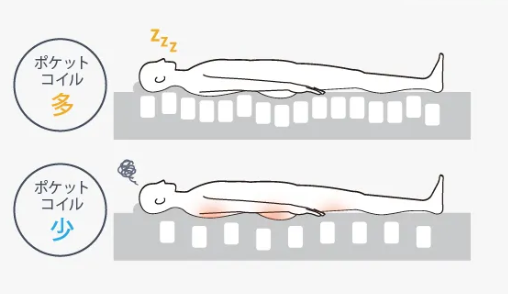 ポケットコイルやゾーニング構造の反発力により、少ない力で寝返りを打つことができ、寝ているときの身体の負担を抑えることが期待できます。
