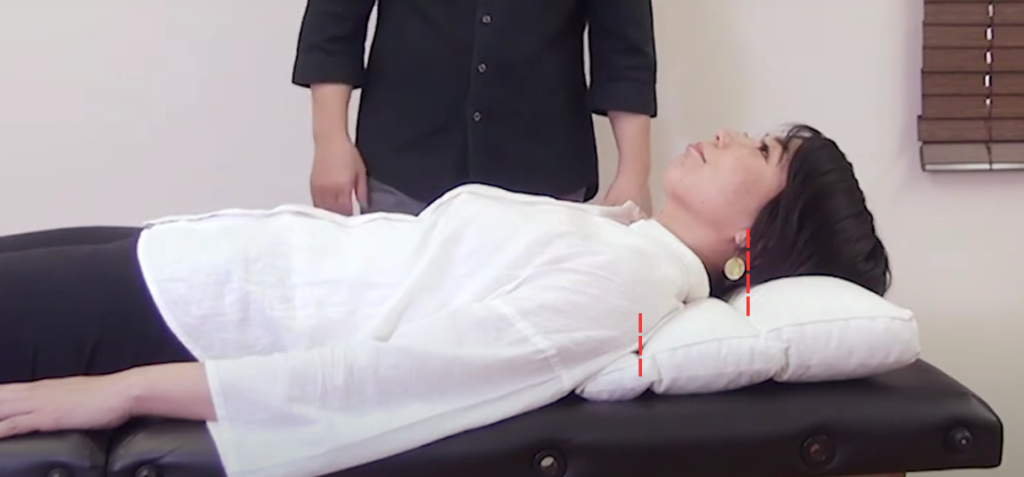 仰向けで寝て下記の点をチェックして、自分に合う高さに調整しましょう。