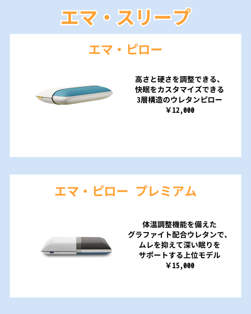 エマ・スリープ ピローは以下の2種類のラインナップです。詳しく紹介していきます。