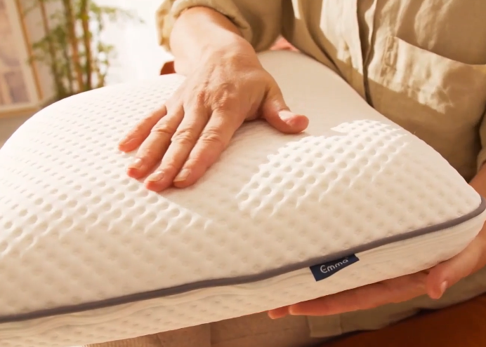 エマ・スリープの人気マットレスと相性抜群の「エマ・ピロー」は、自分好みに高さを調整できるセミオーダー仕様と、快適な通気性、頭と首を優しく支える体圧分散構造が魅力の枕です。