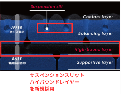 秘密は、SX特有の「サスペンションスリット」と「ハイバウンドレイヤー」。