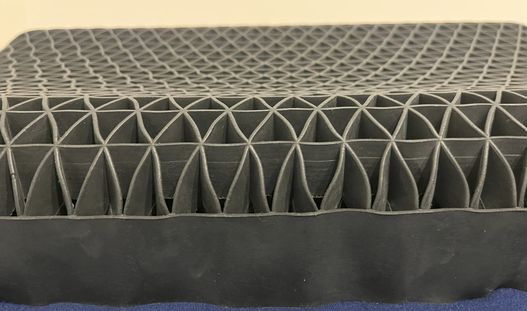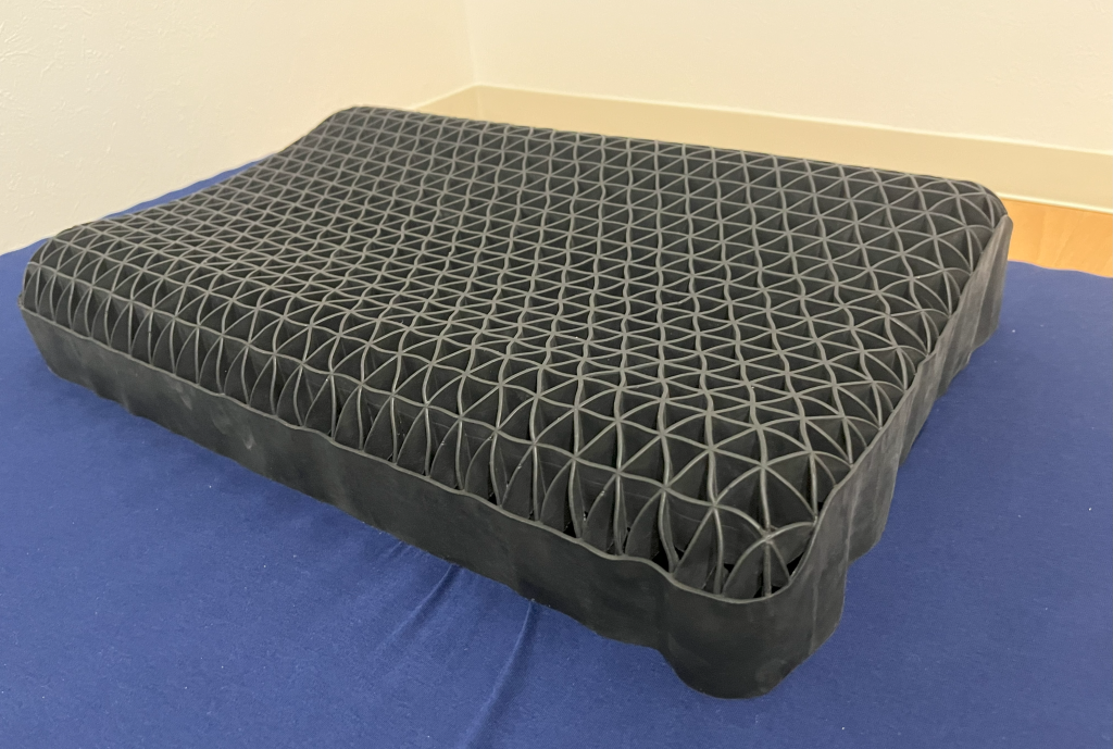 枕全体に広がる「三角格子構造」。このデザインは、ただ見た目がユニークなだけでなく、構造自体が柔軟に変形し、頭の動きに追従してくれる設計です。