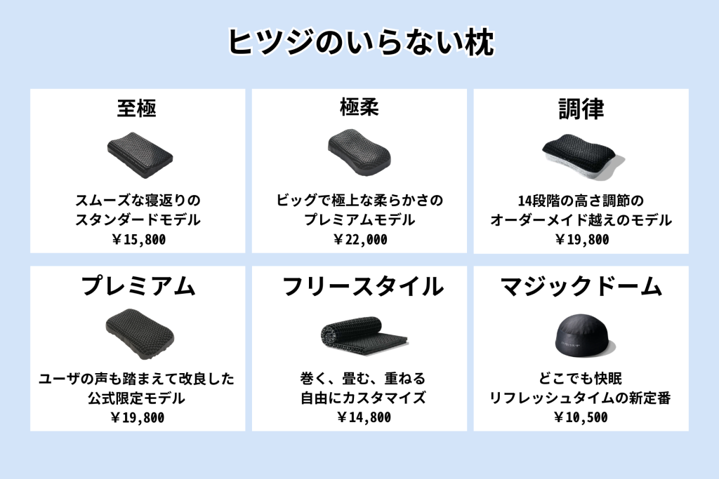 ヒツジのいらない枕シリーズは、独自素材「熱可塑性エラストマー」による“寝返りのしやすさ”と“清潔さ”が評価され、シリーズ累計30万個を突破したバカ売れ快眠枕。