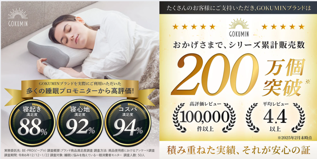 GOKUMIN(ごくみん)は、快適な睡眠環境を追求する日本発の寝具ブランド。マットレスや枕を中心に、コスパの高さと洗練されたデザインで、近年SNSでも注目を集めています。