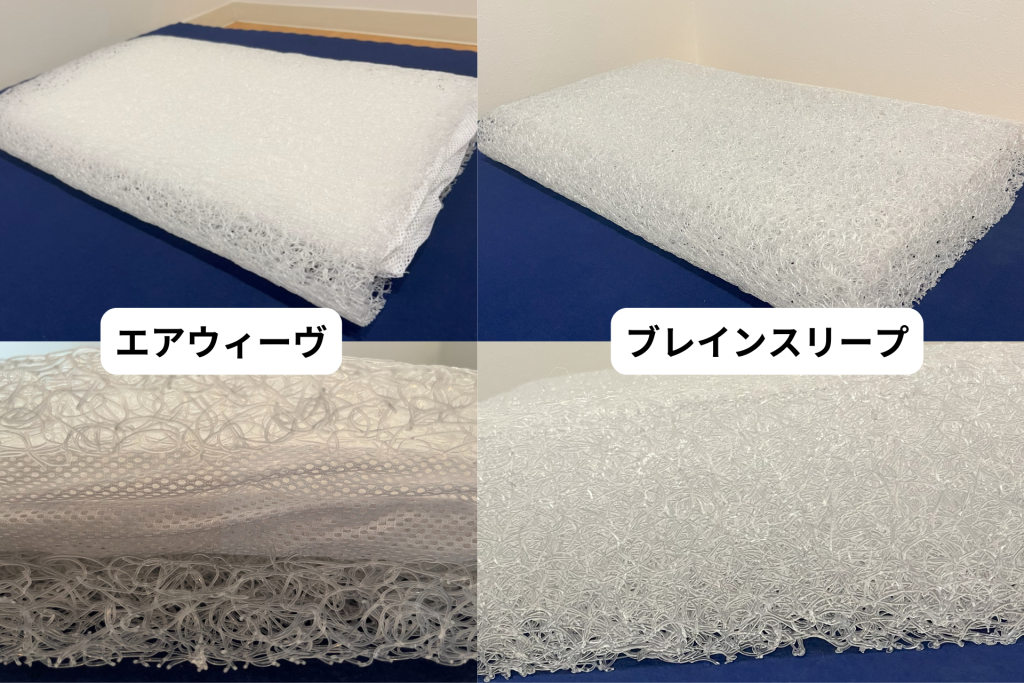 むしろ違いが出るのは構造面。エアウィーヴには高さ調整シートが入っていて、ブレインスリープはすべてがファイバー素材という作りです。この構造の違いが、寝心地や調整のしやすさに影響しますが、通気性に関してはどちらも優秀と言えます。