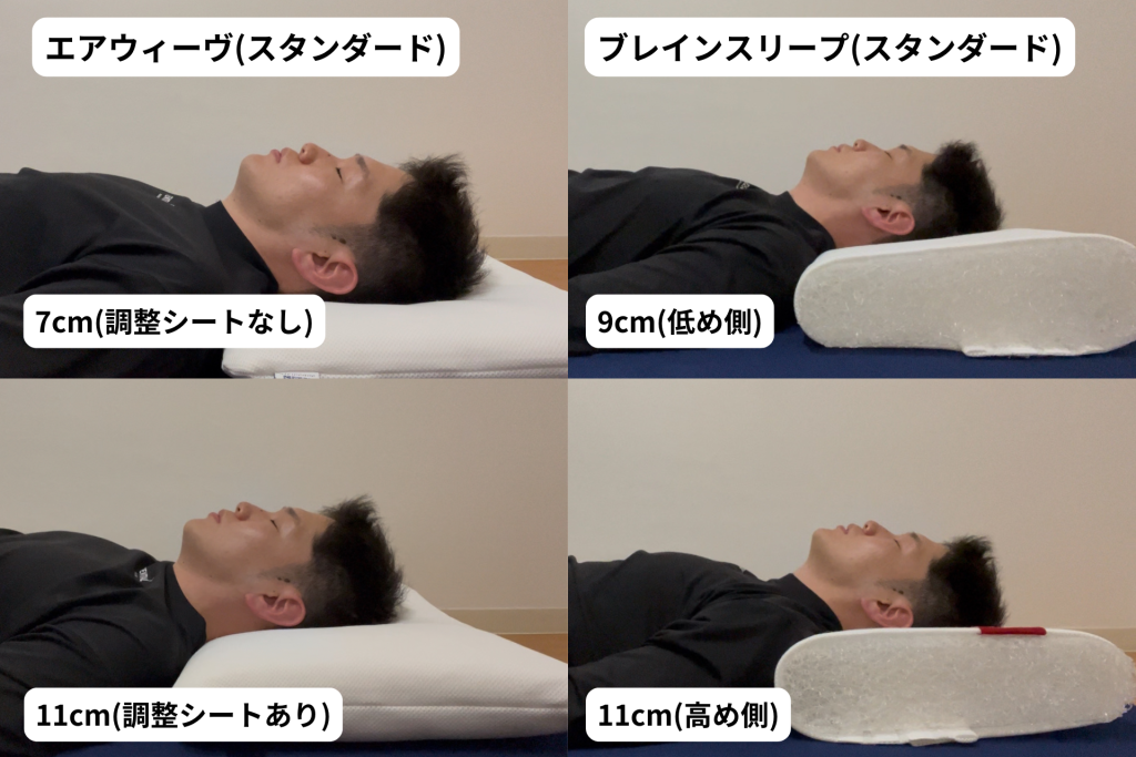 ブレインスリープは普通~比較的高めの枕がしっくりくる人にフィットしやすく、エアウィーヴは低めが好みの人や繊細な調整をしたい人に合いやすいと言えるでしょう。