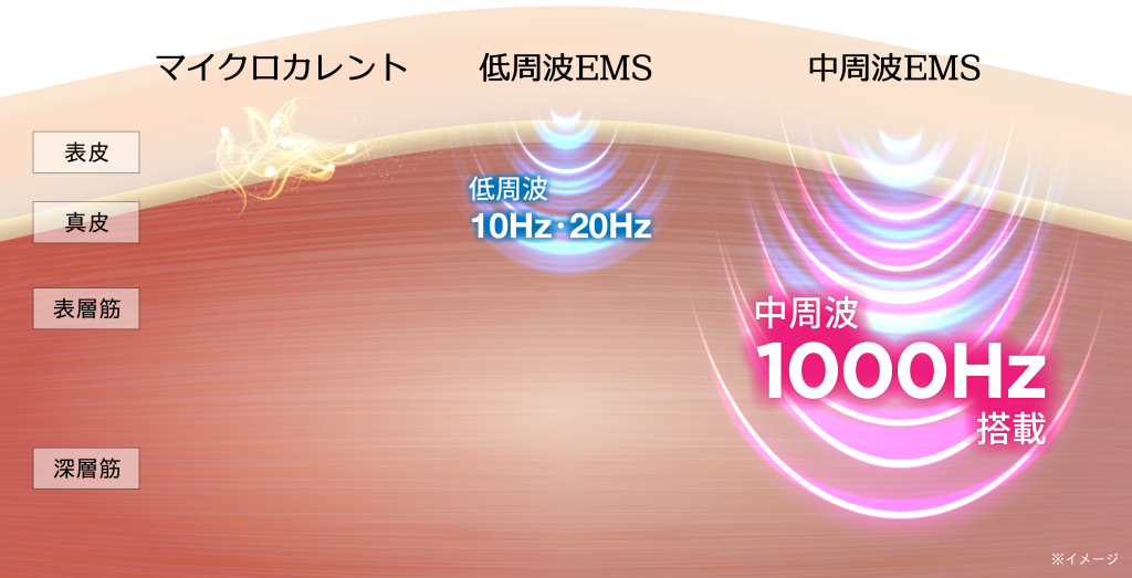 サロンでも注目されている約630nmの波長を採用した赤色LEDを9個搭載。肌の奥までしっかり届く光が、ツヤ・ハリのある肌づくりをサポート。EMSと光のWアプローチで美顔器レベルのケアが可能です。