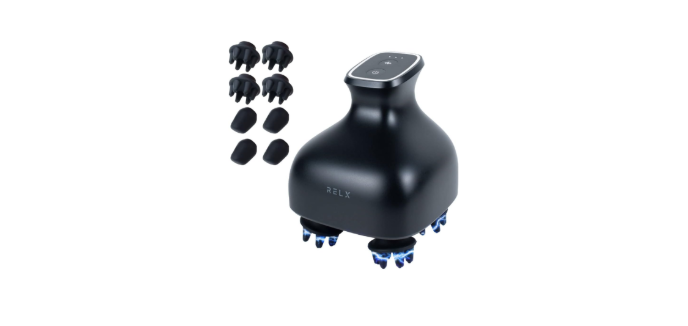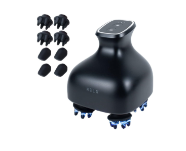 RELX EMS ヘッドスパはAmazonベストセラーで月600台以上売れる人気モデル。低価格ながらも本格EMSと回転マッサージを搭載し、頭皮から肩・顔まで全身ケア。防水・軽量で、お風呂でも手軽にサロン級の癒しを体験できます。