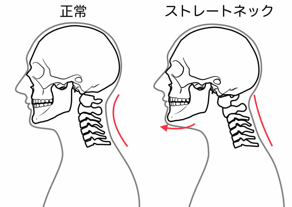 ストレートネックとは、本来ゆるやかにカーブしている首の骨(頸椎)が、まっすぐに歪んだ状態のことを指します。