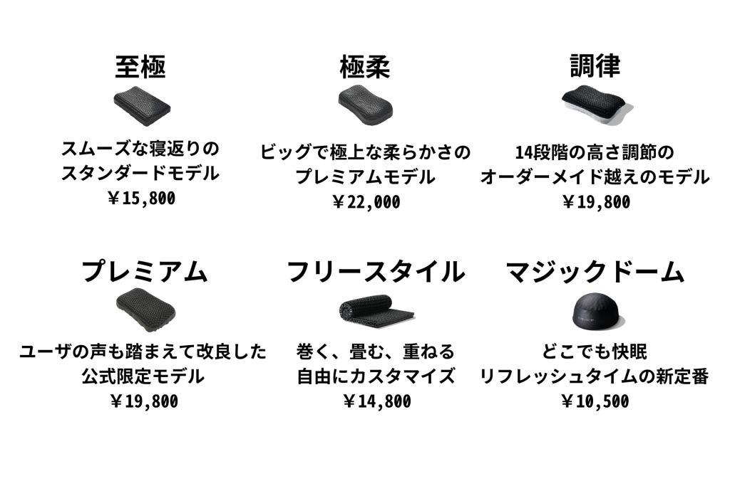 ヒツジのいらない枕は、快適な寝返りと理想の寝姿勢を追求した独自構造の高機能まくらシリーズです。ニーズや好みに応じて選べる多彩なラインナップ。スタンダードからカスタマイズ可能なモデルまで、全6種類あります。