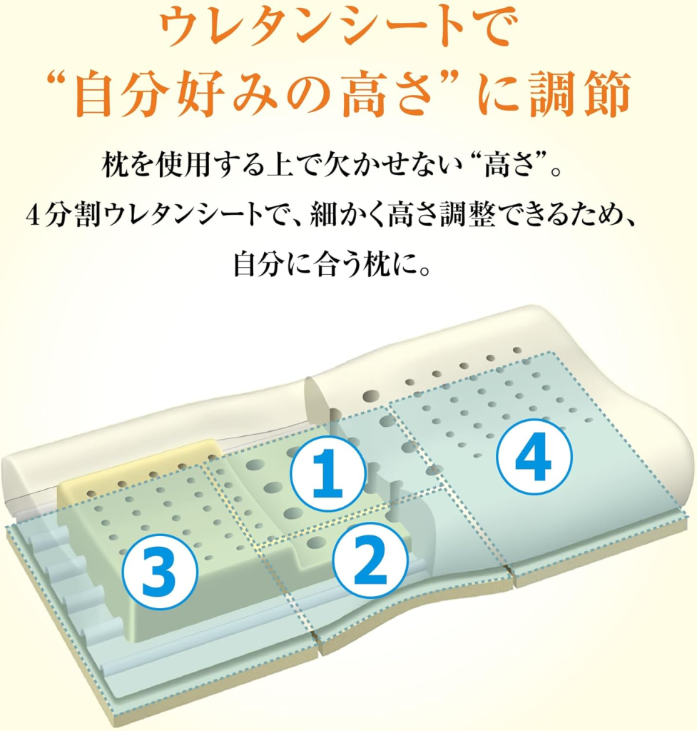 気温によって硬さが変わりにくい特殊ウレタンと、高い通気性をもたらす空気孔構造で、四季を通じて安定した快適さを保てるのです。仰向け・横向きのどちらでも自然な寝姿勢を保ちやすく、枕選びで迷いがちな“高さ問題”を家庭で微調整できる仕様を備えています。