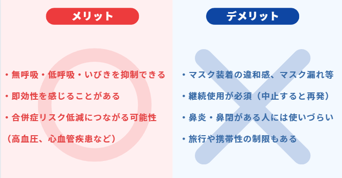 ・日中の眠気改善、QOL(生活の質)の向上、併存する高血圧・心血管リスク低減といった長期的効果も期待されます。